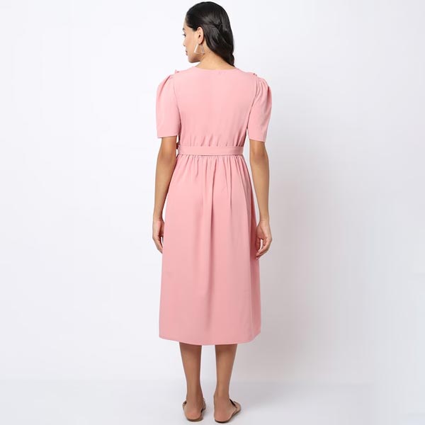 Pink solid fit & flare dress